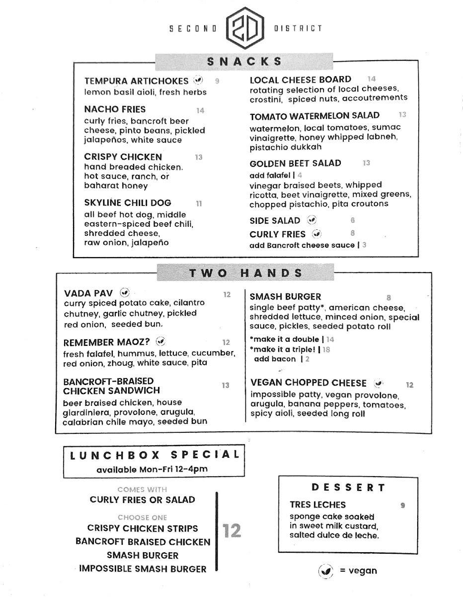 Second District Brewing offers a menu that feels approachable and satisfying, perfect for enjoying alongside their carefully crafted beers. The food leans toward casual, hearty fare—think of comforting, well-made pub classics with a slight modern touch. Whether you’re stopping by for a relaxed weekday afternoon or gathering with friends for a lively evening, the menu pairs effortlessly with the welcoming, low-key vibe of the space.